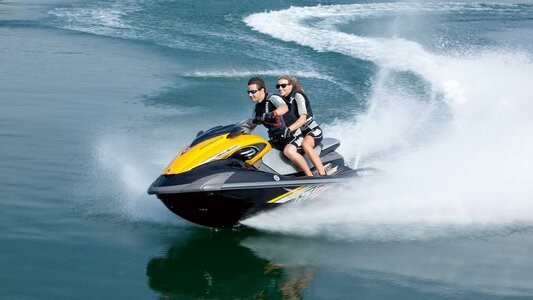- начинать движение, если пассажиры не заняли свои места, либо водитель и пассажиры не надели спасательные жилеты, либо глубина воды недостаточна для работы водомета гидроцикла.