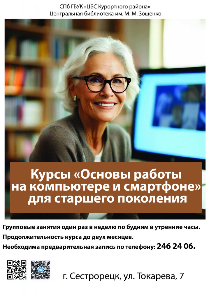 Библиотека Зощенко открывает набор на бесплатные компьютерные курсы и курсы пользователей смартфонов для пенсионеров.