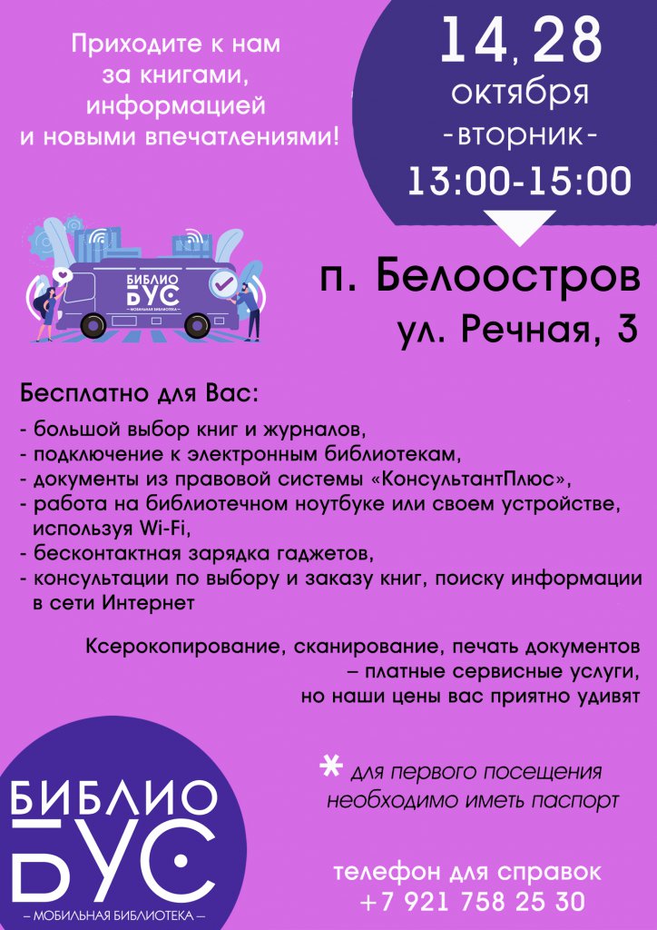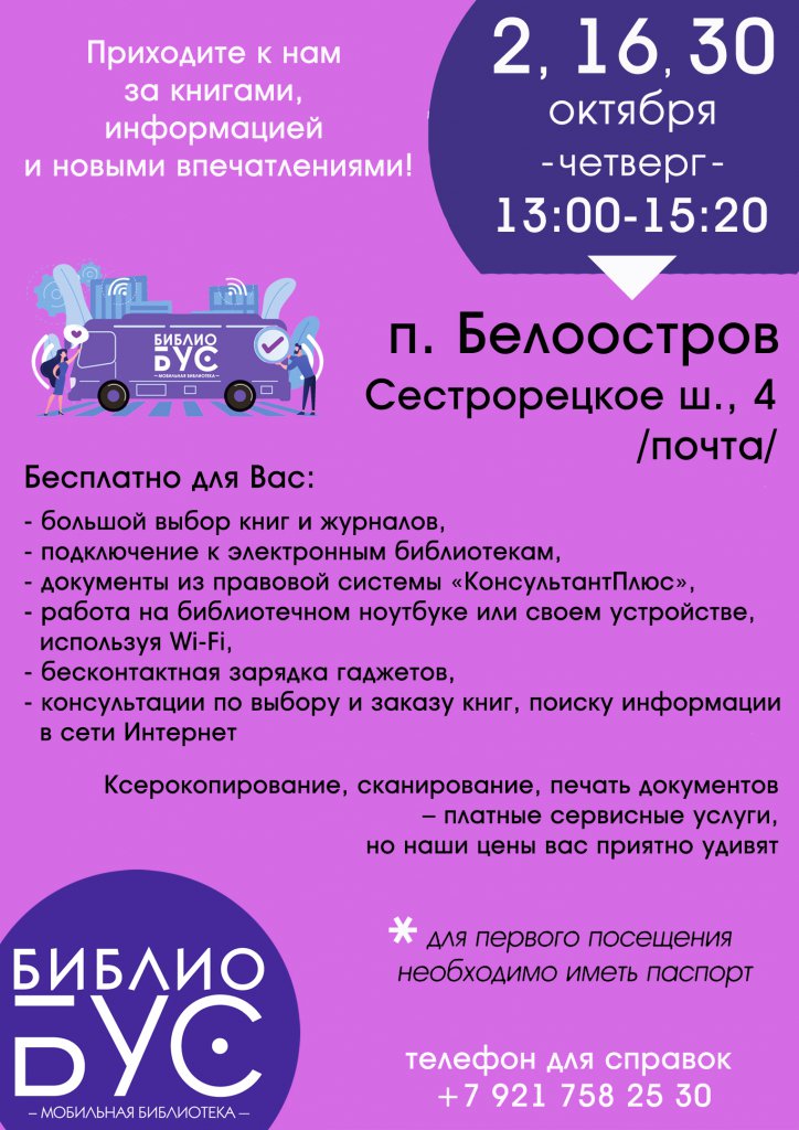 Расписание библиобуса на октябрь