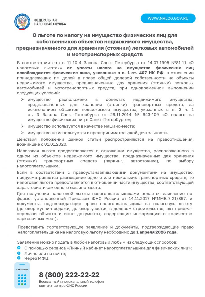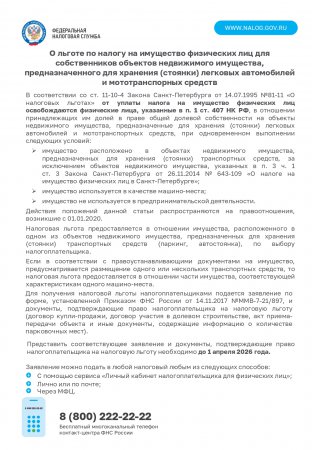информация о налоговых льготах, действующих при налогообложении имущества за налоговый период 2025 года.